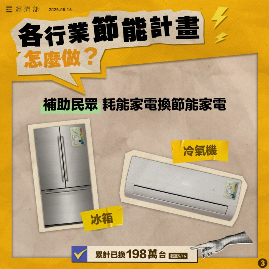 接下來,政府將繼續支持各產業,用深度節能創造能源,目標2027年省電達 206億度。