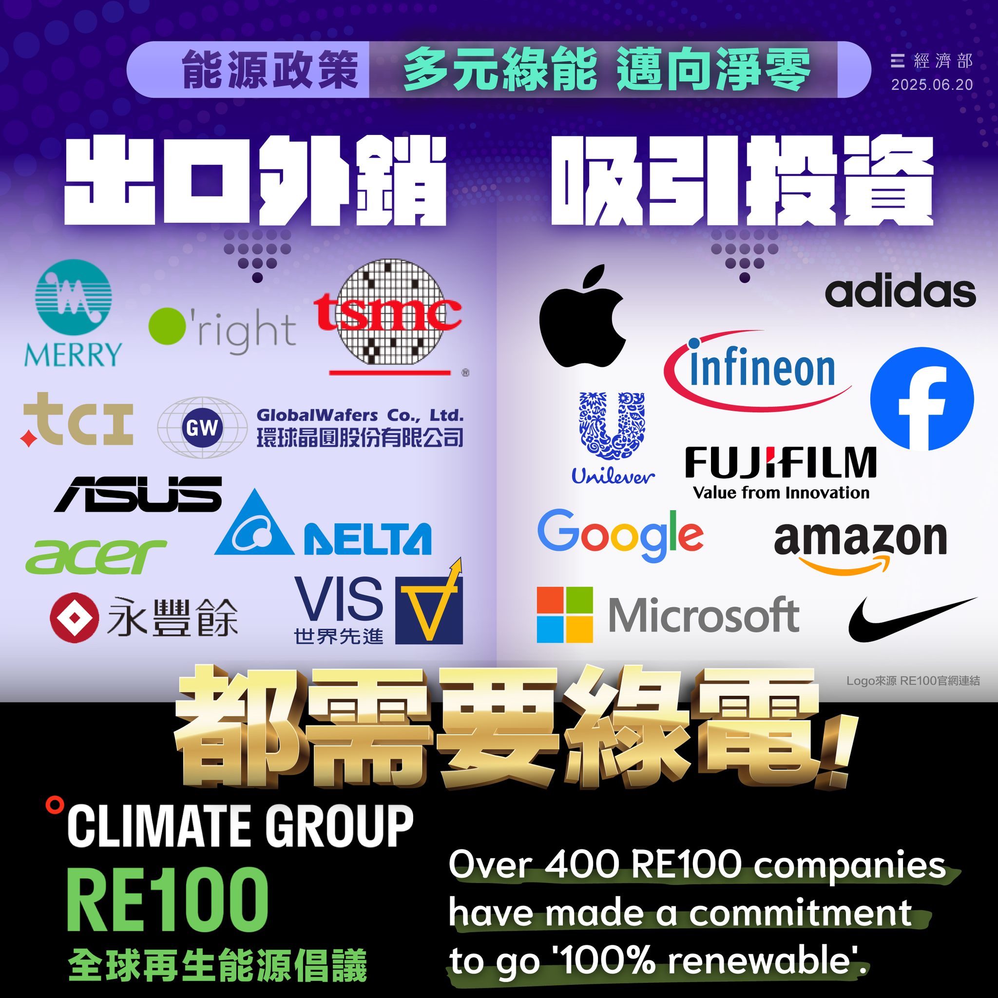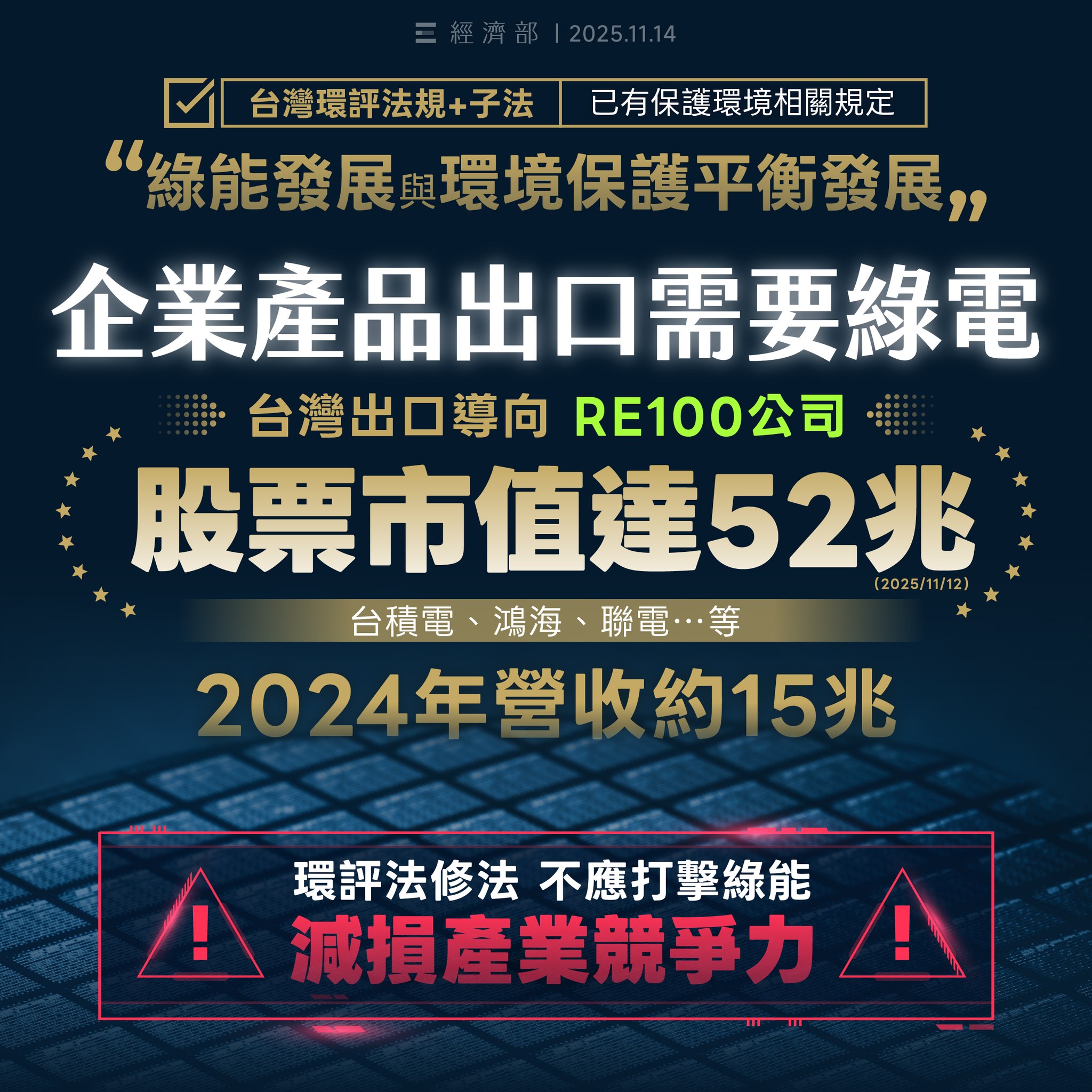 台灣產業出口需綠電,網路假資訊勿輕信