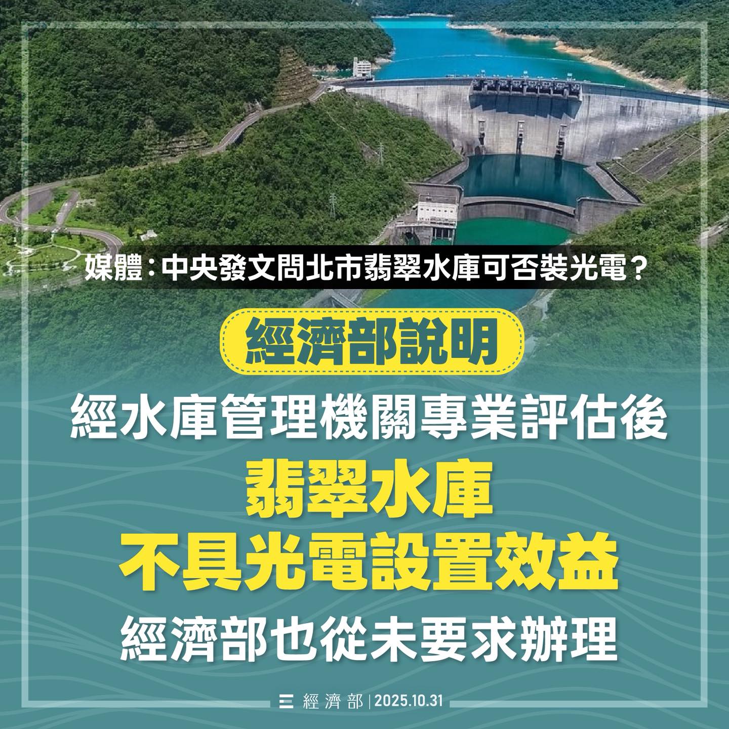 翡翠水庫不具設光電板的發電效益