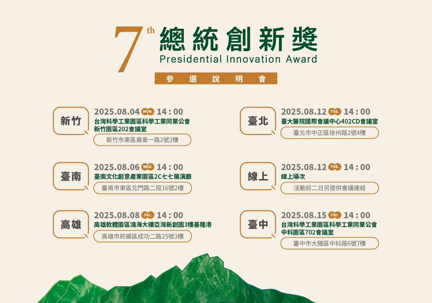 經濟部奉總統指示規劃及辦理「總統創新獎」(Presidential Innovation Award),鼓勵產、學、研界及政府機關之個人或團體,積極追求在產品、技術、管理、組織、行銷、服務或文化等多元創新與價值創造,帶動國家整體經濟發展與強化國際競爭力優勢,彰顯獲獎者在全球引領產業世代交替的關鍵地位,或在國際舞臺上塑造臺灣獨特價值成就之最高創新典範,特訂定本須知。